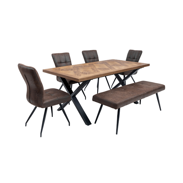Style meets spacious practicality with the Eden Dining Set, a beautifully crafted centrepiece designed for modern, sociable living. With a striking 1.8-metre Medium Elm wood table, four antique-look dining chairs and a matching bench, this set brings warmth, comfort, and versatility to your dining space.